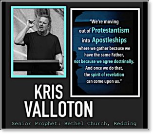 For a couple of decades Sarah Leslie of Discernment Ministries has been reporting on the NAR, which has gone by many different names over the years such as Latter Rain, Manifested Sons of God (who have supernatural spiritual power), Kingdom Now, and most recently the New Apostolic Reformation. According to Sarah,